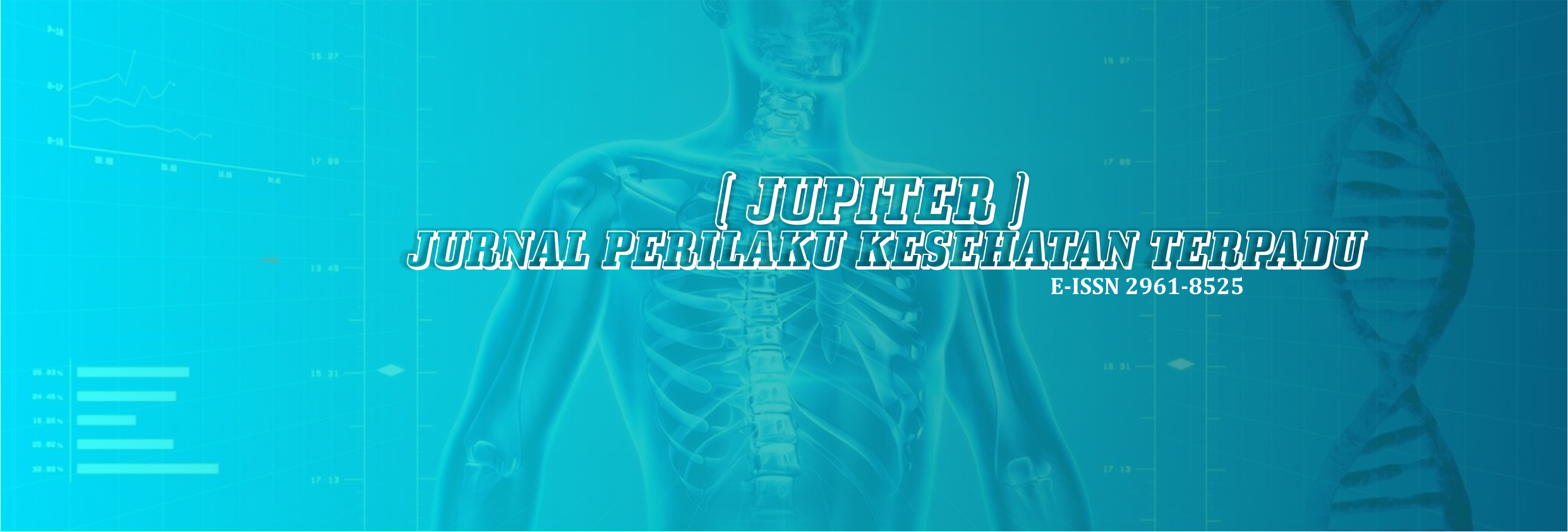 Jurnal Perilaku Kesehatan Terpadu (Jupiter) E-ISSN 2961-8525 is a peer-reviewed publication, which discusses public health, nursing, obstetrics, health policy administration, health promotion, hospital management, health psychology, advocates, health empowerment and offers with original articles on public health practice, teaching and research.  In this era of globalization, it requires us to always make changes in health developments related to lifestyle, changing norms and rules, be it society and interrelated stakeholders form a new behavior. The topics raised in this journal are very relevant to the development of today's times where factor behave are very determine the status of the degree of health of both individuals and groups and communities. This will certainly make a very large contribution if the results of the research are used as a reference in the preparation and resolution of health problems that arise. The presence of this journal with various disciplines and institutions that are competent, scientists and professionals in their fields. Gives birth to thoughts and thinking is more documented and socialized and easy to get online.